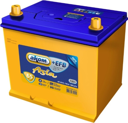 Батарея аккумуляторная АКОМ 4607034731502 65А/ч 700А 12В обратная полярн. выносные (Азия) клеммы